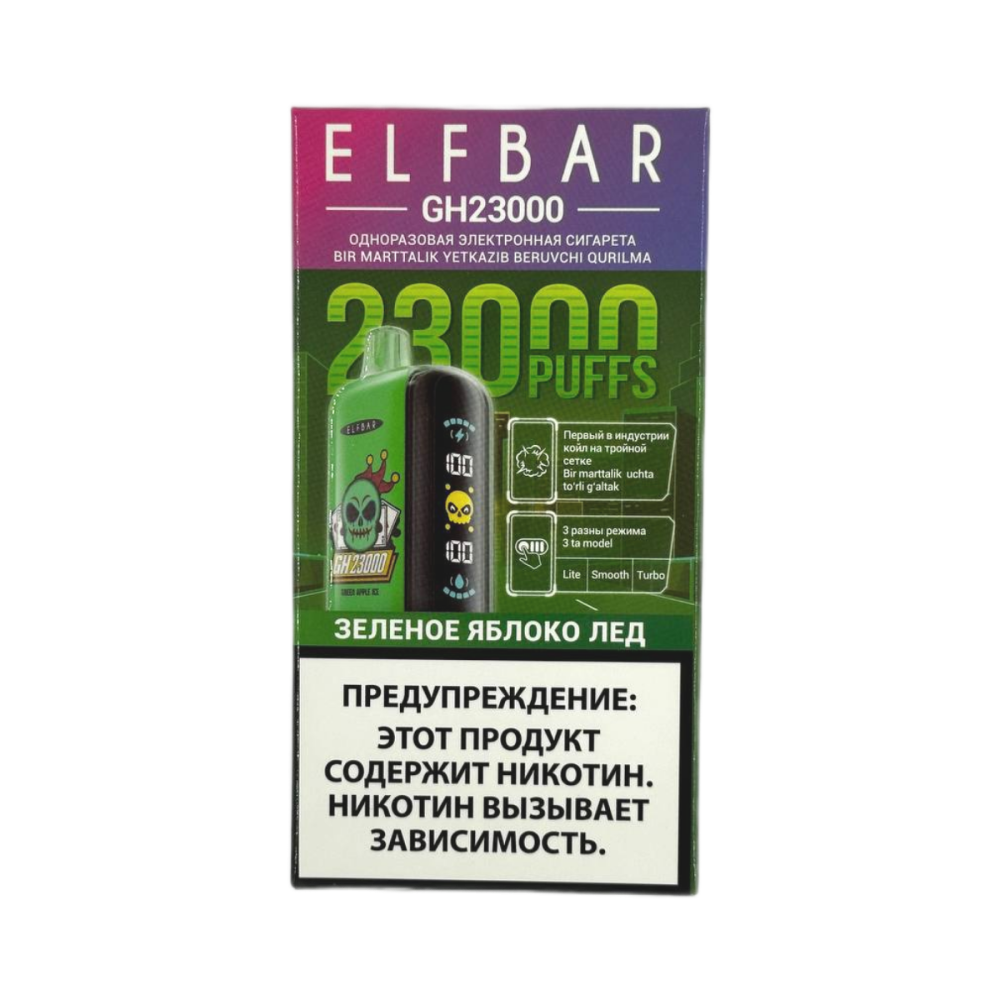 Купить электронную сигарету ELFBAR GH 23000 Зеленое яблоко лед в магазине snusmsk — отличное решение для тех, кто ценит качественные устройства с насыщенным вкусом. Эта модель рассчитана на 23000 затяжек, обеспечивая длительное и комфортное использование без необходимости дозаправки и подзарядки. Вкус Зеленое яблоко лед сочетает свежесть сочного зеленого яблока с холодящим эффектом льда, создавая яркое и освежающее чувство при каждом затягивании. ELFBAR GH 23000 отличается компактным и удобным дизайном, что делает устройство практичным для ежедневного применения и комфортного ношения в любом месте. Электронная сигарета подходит как для новичков, так и для опытных пользователей, благодаря простоте в эксплуатации и стабильности работы. Магазин snusmsk предлагает оригинальные устройства с гарантией качества и быстрой доставкой по всей России. Приобретая ELFBAR GH 23000 Зеленое яблоко лед в snusmsk, вы получаете надежное устройство с насыщенным и свежим вкусом, которое не оставляет неприятного запаха. snusmsk обеспечивает выгодные цены и квалифицированное обслуживание, делая процесс покупки удобным и безопасным. Благодаря передовым технологиям, электронная сигарета предоставляет стабильное парение и максимальное удовольствие на протяжении всего срока службы. Покупка в магазине snusmsk гарантирует подлинность и высокое качество каждого устройства. ELFBAR GH 23000 Зеленое яблоко лед станет идеальным выбором для тех, кто хочет насладиться сочным фруктовым вкусом с охлаждающим эффектом.