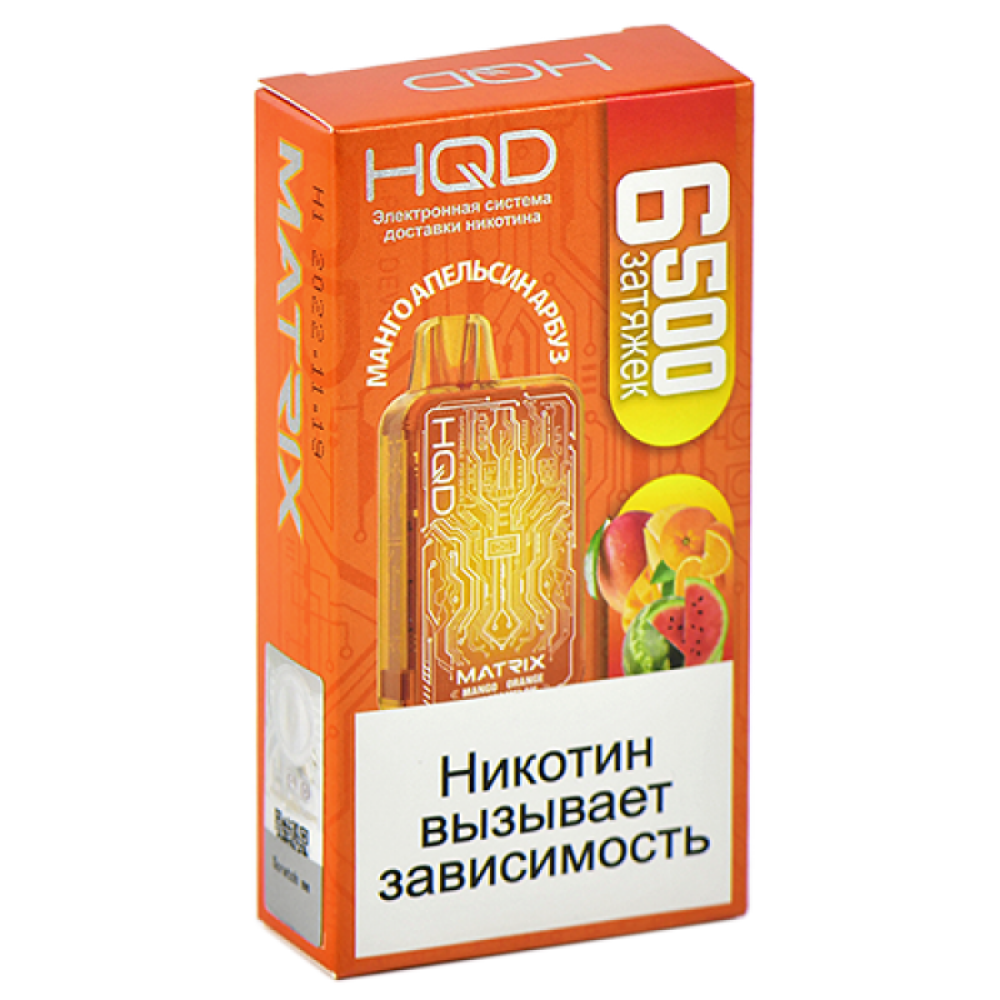 - Купить электронную сигарету HQD MATRIX Манго, Апельсин, Арбуз в магазине snusmsk Электронная сигарета HQD MATRIX Манго, Апельсин, Арбуз – это яркое сочетание сочных фруктовых вкусов, которое подарит незабываемые впечатления любителям вейпинга. Триада манго, апельсина и арбуза создаёт свежий и освежающий букет, идеально подходящий для тех, кто предпочитает фруктовые ароматы. Устройство одноразовое, поэтому не требует заправки и ухода, что особенно удобно для пользователей, ценящих простоту и комфорт. HQD MATRIX отличается компактным и эргономичным дизайном, позволяющим легко брать сигарету с собой и использовать в любом месте. Высокое качество компонентов обеспечивает приятное облако пара и насыщенность вкуса на протяжении всего времени использования. Такое сочетание манго, апельсина и арбуза делает каждый вдох по-настоящему вкусным и освежающим. В магазине snusmsk можно купить оригинальную электронную сигарету HQD MATRIX Манго, Апельсин, Арбуз с гарантией качества и быстрым оформлением заказа. Магазин предлагает разнообразные варианты доставки, что делает покупку удобной и доступной для всех клиентов. Здесь вы найдете только проверенные товары от проверенных производителей. Выбирая HQD MATRIX Манго, Апельсин, Арбуз в snusmsk, вы получаете качественный продукт с ярким вкусом и удобством использования. Закажите электронную сигарету прямо сейчас и наслаждайтесь насыщенным фруктовым вкусом в каждой затяжке.