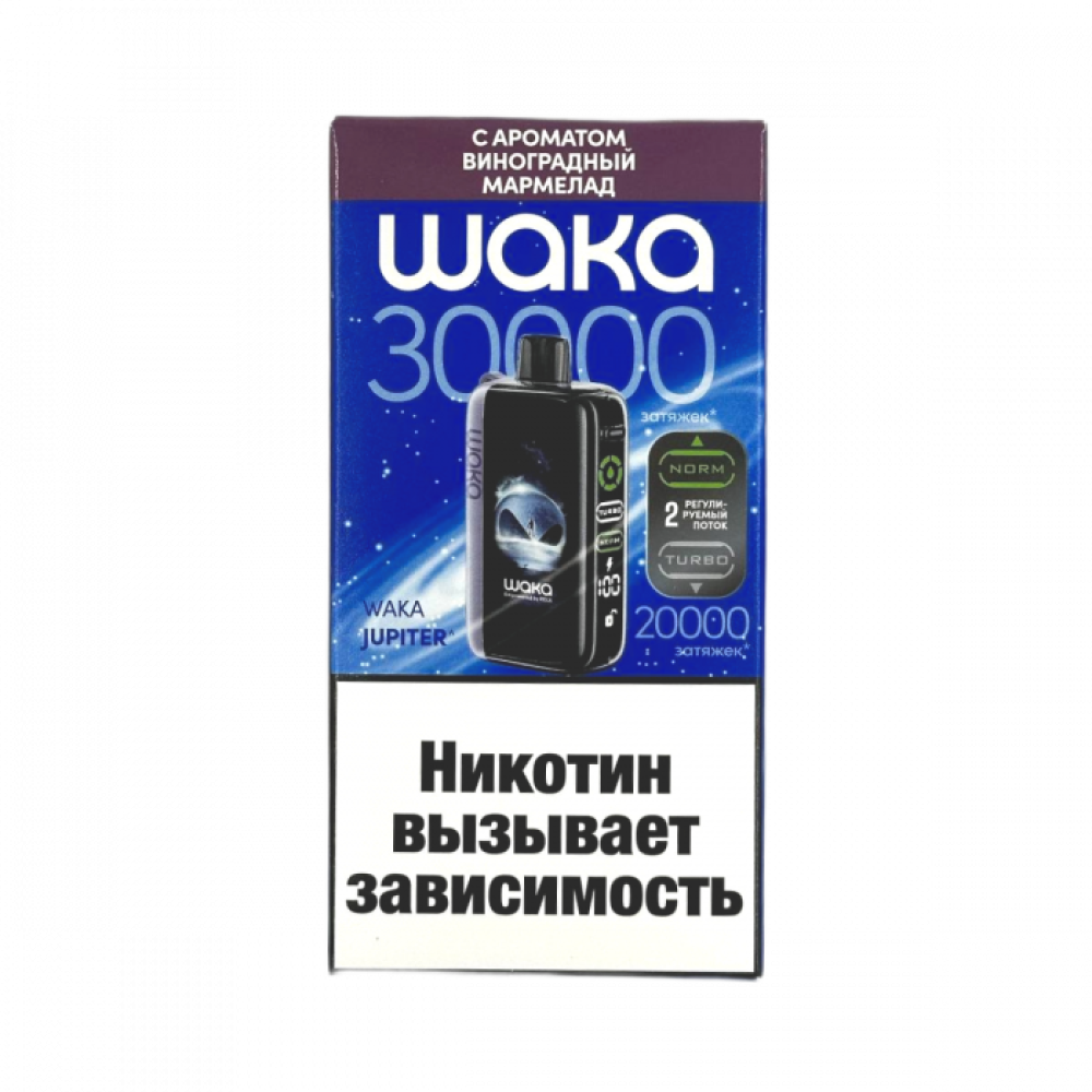 Купить электронную сигарету Waka Jupiter 30000 Виноградный Мармелад в магазине SnusMSK — отличный выбор для ценителей насыщенных и сладких вкусов. Эта модель рассчитана на 30000 затяжек, что обеспечивает долговременное использование без необходимости частой замены. Вкус Виноградного Мармелада имеет яркий фруктовый аромат с насыщенными нотами сочного винограда и нежной сладости, создавая приятное и запоминающееся впечатление.